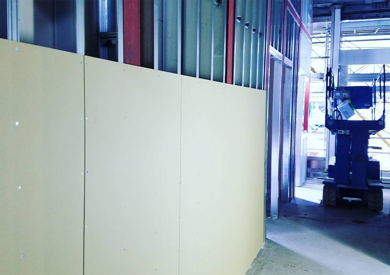 強化せっこうボードの耐火性能などを保持しながら、耐震的性能をさらに向上させたボードなど様々なボードで施工致します 。